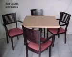 Juego de mesa con cubierta de 80 x 80 forrada en un solo tono de laminado pl�stico rexcel y pedestal modelo 200 (cruz)en acabado electrost�tico color negro, gris-plata � chocolate, con niveladores y 4 sillas modelo 2026b con brazos entitnadas en tono de su elecci�n tapizadas en tela 100% acr�lico o vinil (colores lisos a elegir)