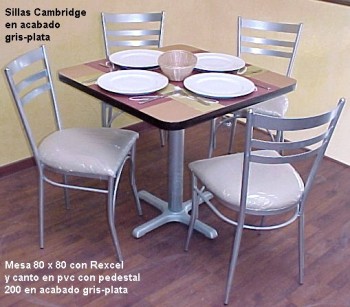 Juego de mesa cambridge con cubierta forrada en un solo tono de laminado pl�stico rexcel y canto en PVC negro y pedestal mod. 200 (cruz) en acabado negro y sillas mod. Cambridge en tubular acabado negro, gris-plata � chocolate, tapizadas en tela 100% acr�lico o vinil (colores lisos a elegir)
