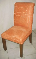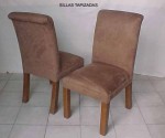 Silla tapizada en tela 100% acrilico o en vinil (colores lisos a elegir), con patas en madera de banak o �lamo entintadas en tono de su elecci�n.